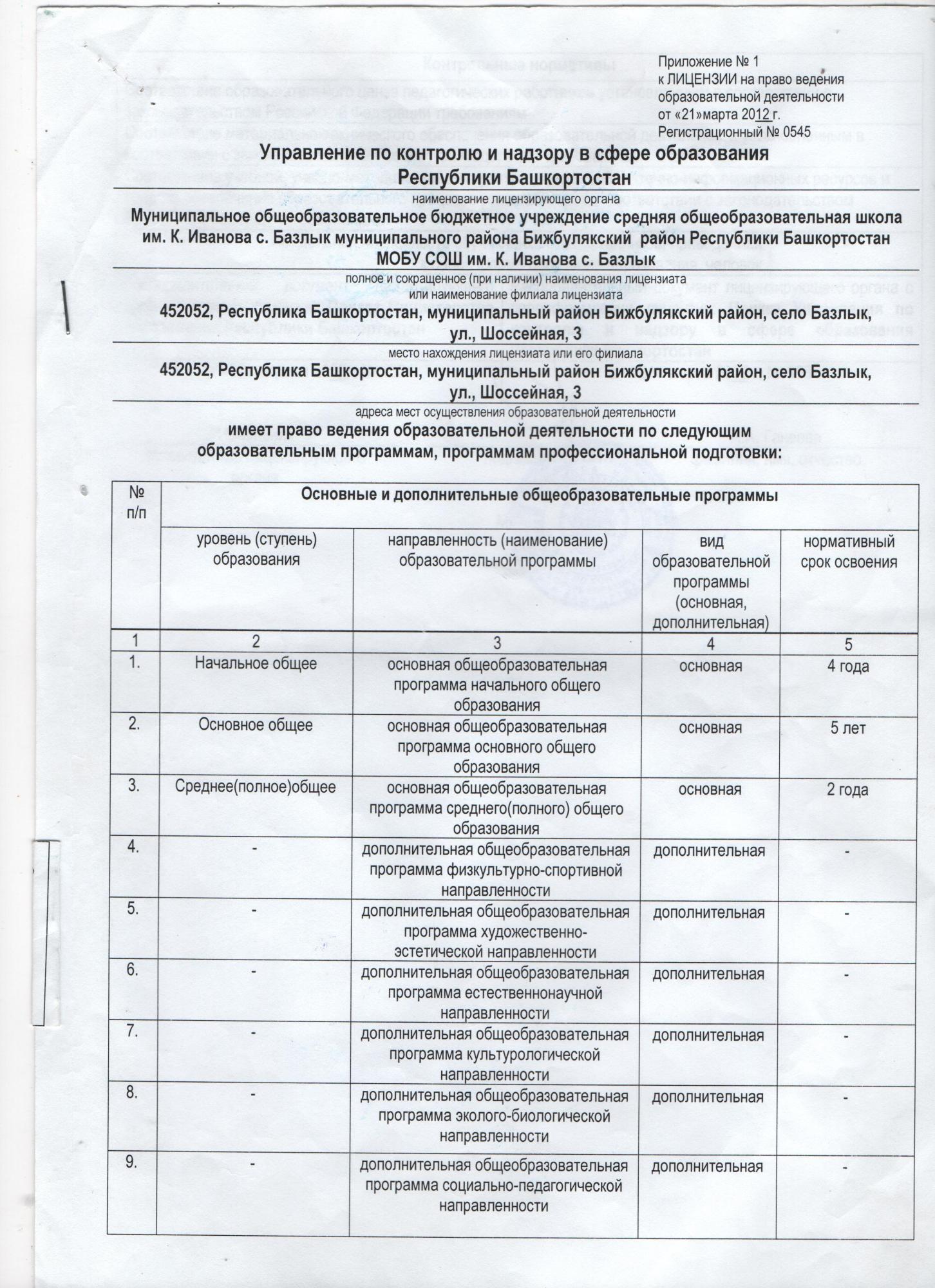 Муниципальное общеобразовательное бюджетное учреждение средняя общеобразовательная школа им.К.Иванова с.Базлык Бижбулякского района Республики Башкортостан