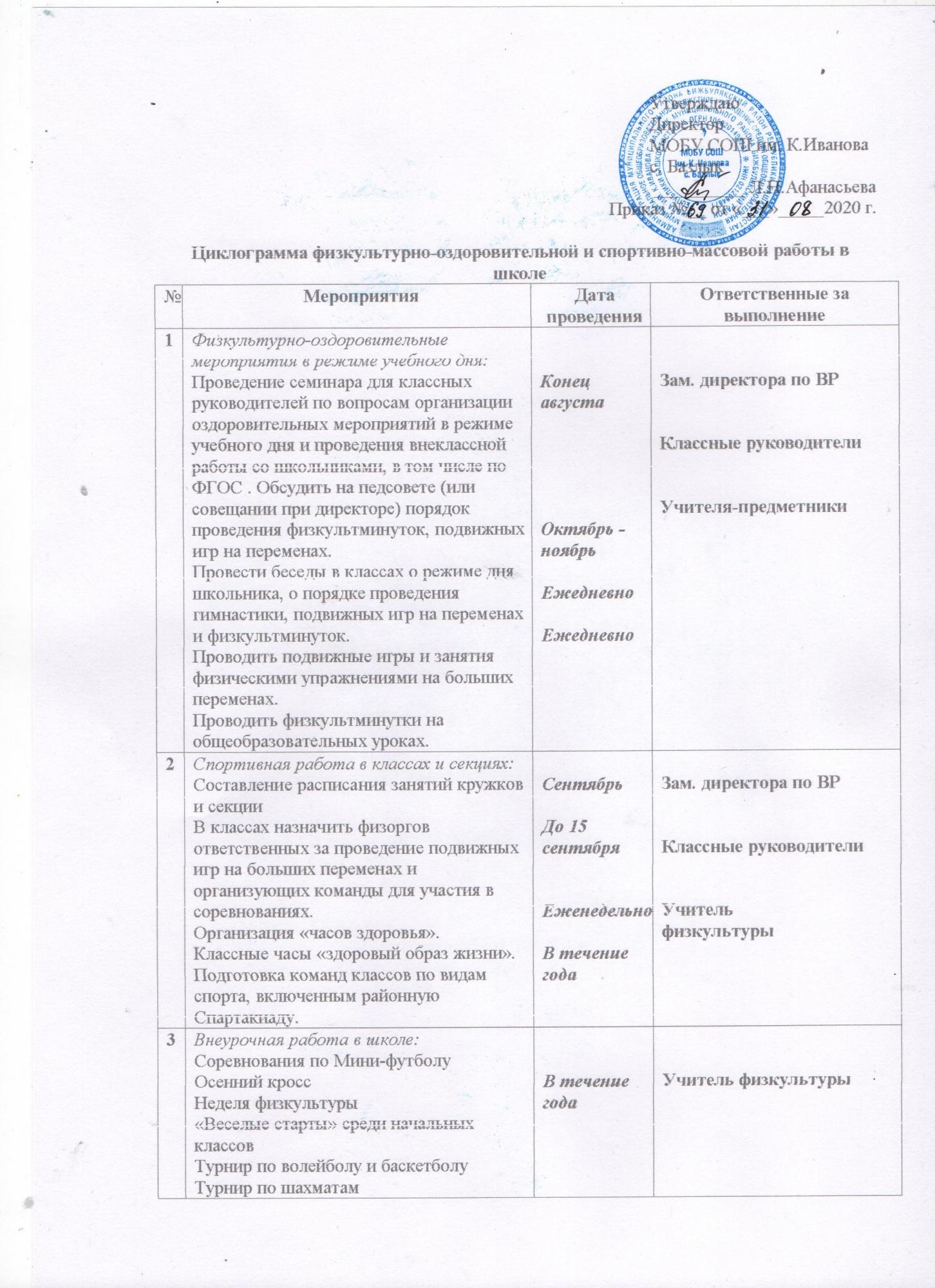 Учебно-воспитательный план МОБУ СОШ им. К.Иванова с. Базлык