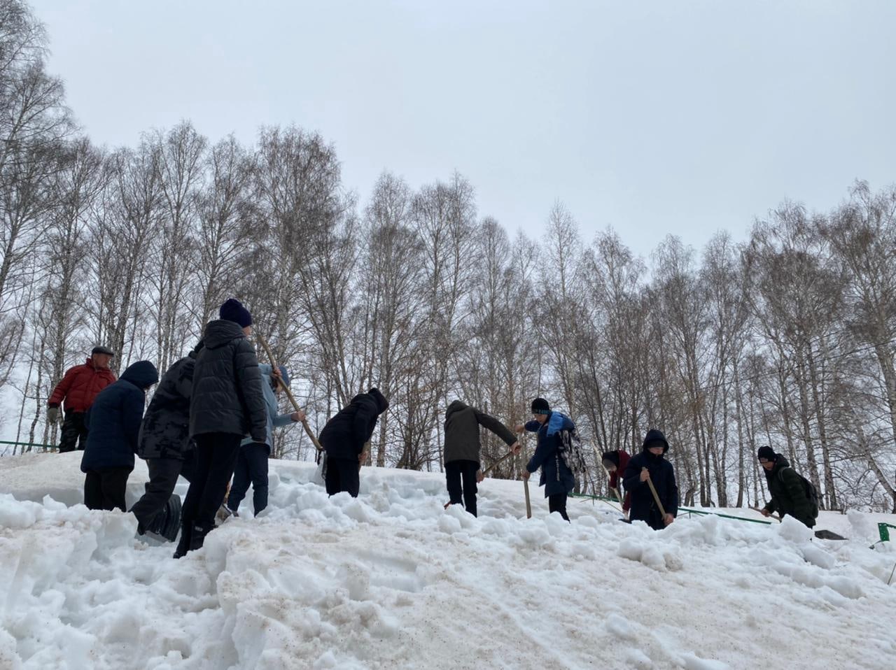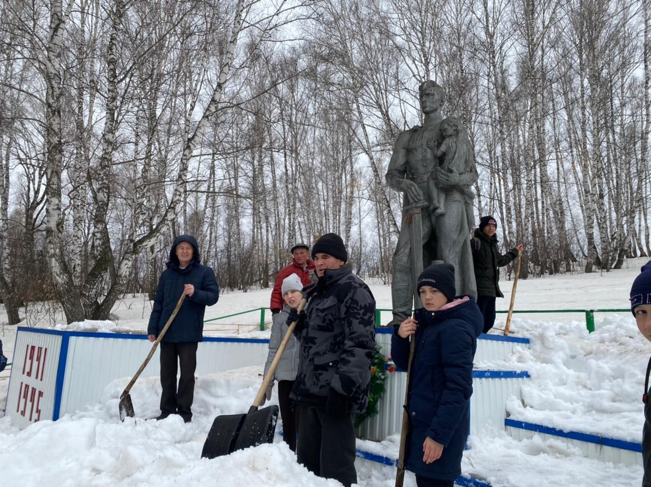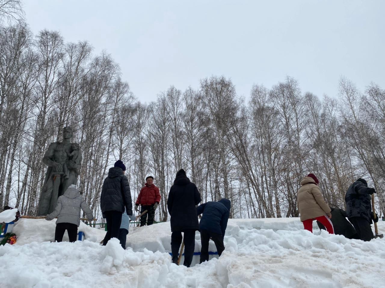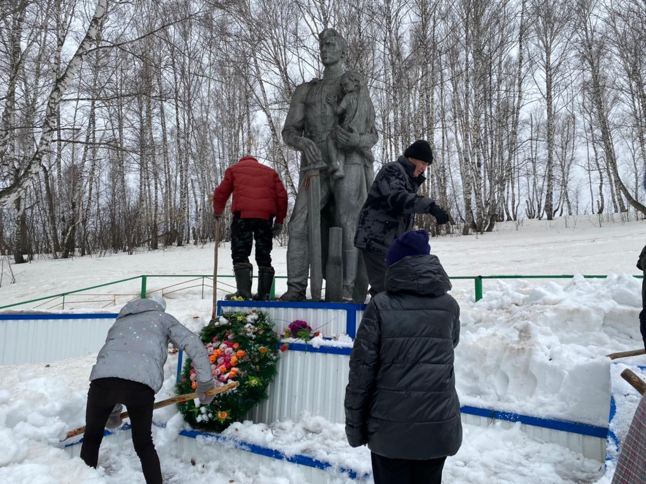 Акция по благоустройству памятника, павшим землякам в Великой Отечественной войне. Сегодня ученики 8, 10 классов очистили территорию памятника от снега.